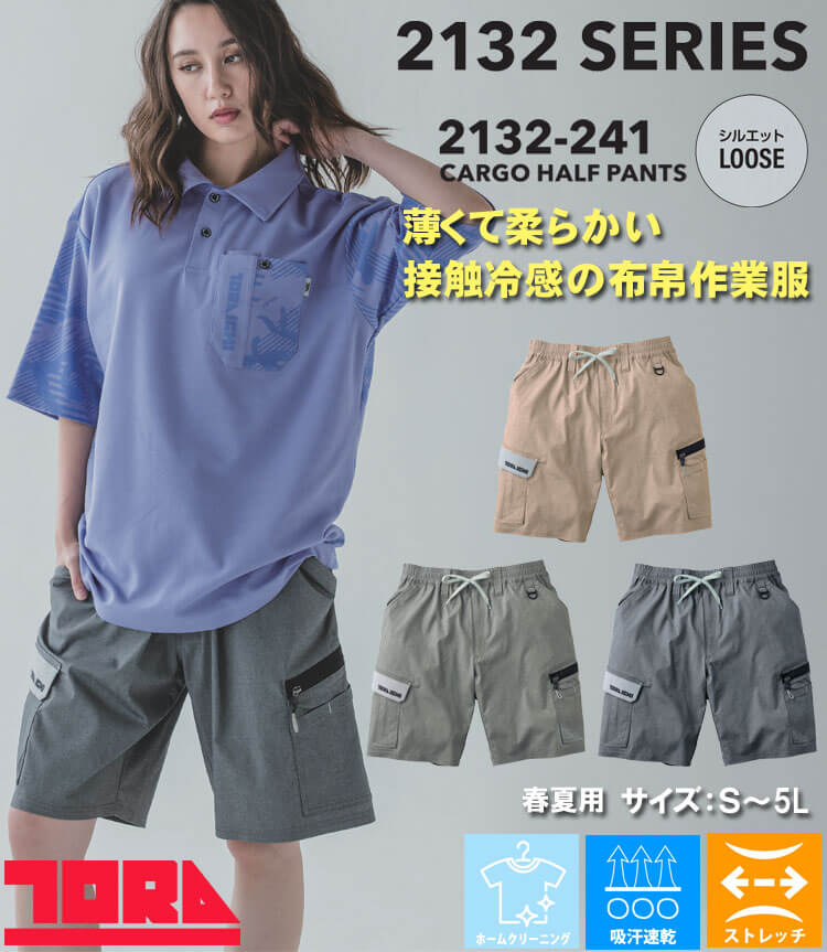 作業服 作業着 春夏 TORAICHI 寅壱 トライチ 数量限定 接触冷感 カーゴハーフパンツ 2132-241 サイズS~3L 2026年春夏新作 2132シリーズ