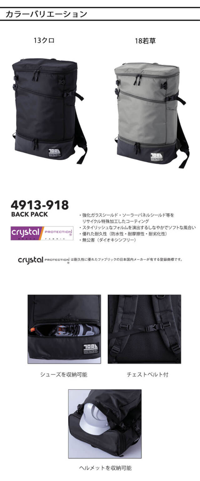 | 製品名: | 作業服 鞄 通勤 仕事用 リュック TORAICHI 寅壱 トライチ マルチ収納バックパック 4913-918 |