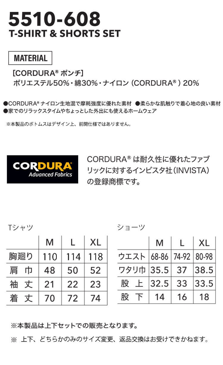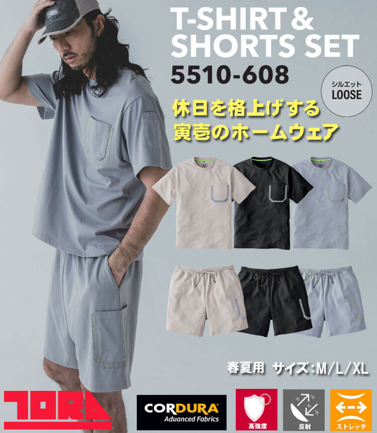 | 製品名: | 部屋着 ホームウェア 春夏 TORAICHI 寅壱 トライチ 上下セット 半袖Tシャツ・ショートツセット 5510-618 |