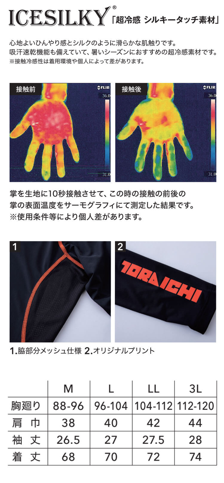 | 製品名: | インナー 春夏 TORAICHI 寅壱 トライチ 接触冷感 UVカット 半袖クルーネックTシャツ 7996-618 |