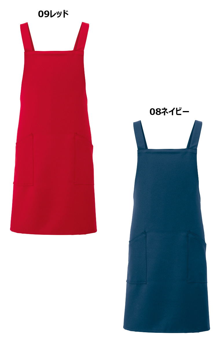 好印象胸当てエプロン。リーズナブルに揃えられるお手軽チームウエア。
