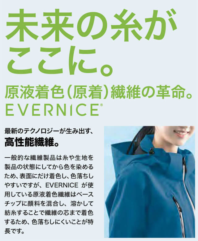 色褪せ、変色しない水の使用量、CO2排出量を抑える事ができる地球に優しい「原着糸」を採用した全天候型ジャケットです。mono material(モノマテリアル)、リサイクルをする事を前提として作られた最先端のウェアです。
