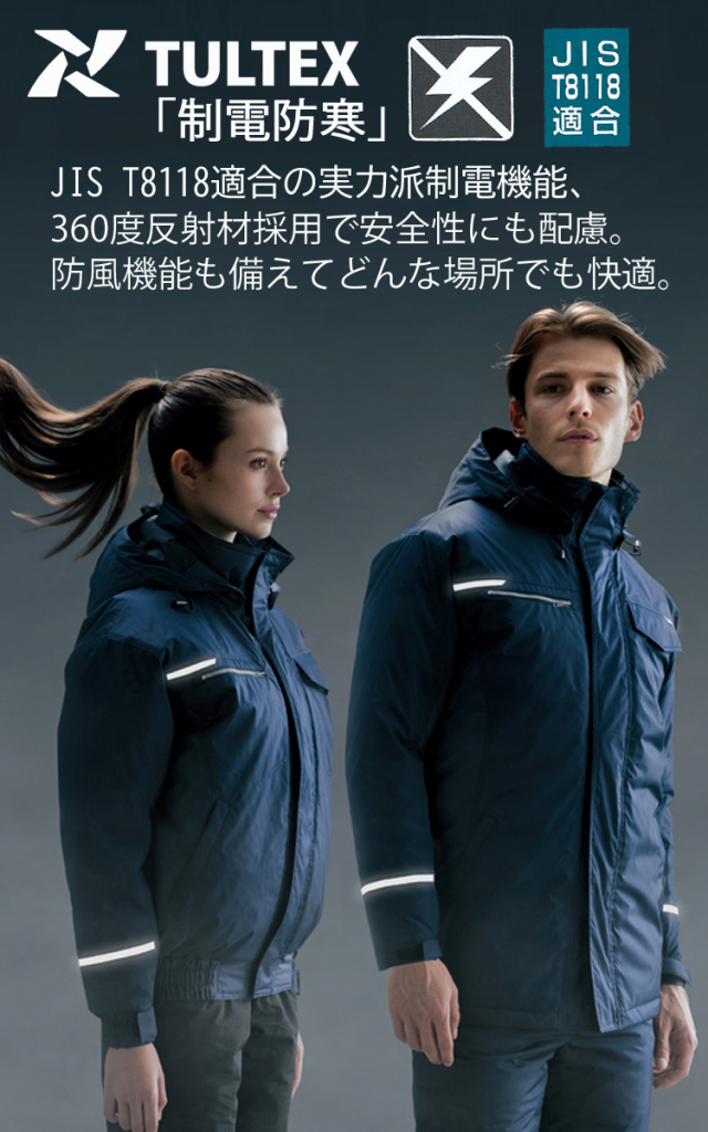 JIS T8118適合の実力派制電機能、360度反射採用で安全性にも配慮します。防風機能も備えてどんな場所でも快適に過ごせます。