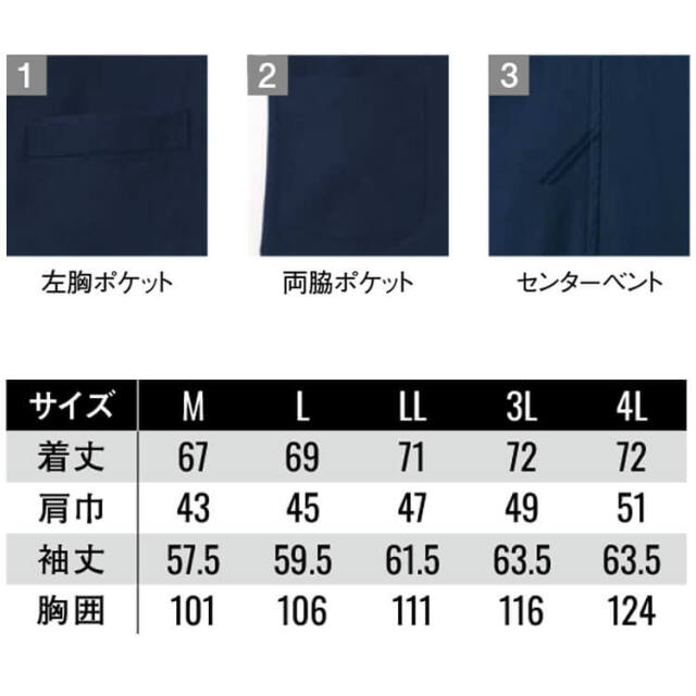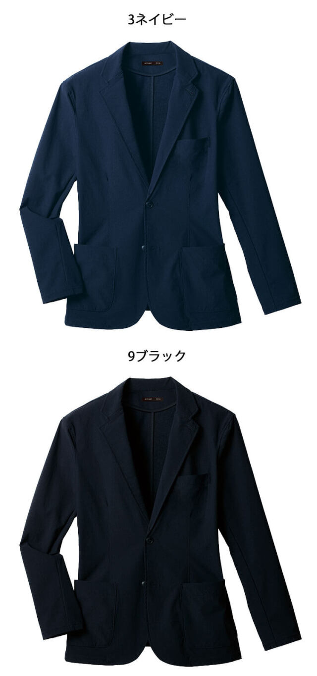 ニット素材の自由な伸縮性と織物の耐久性を両立した高価素材を使用しています。高形態安定性で折りシワがつきにくく、ワーカーの動きを科学した3Dカッティングのスリムシルエットでストレスから解放される着心地です。