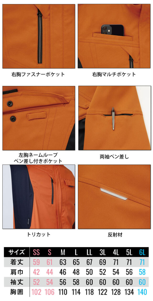 冷たい風の侵入を防ぐ防風素材で、薄くても快適です。軽量ストレッチ素材なので疲れにくく、作業効率もUPさせます。軽さとフィット感とストレッチ効果で身体にかかる負担を軽減し身体パフォーマンスを最大限引き出します。