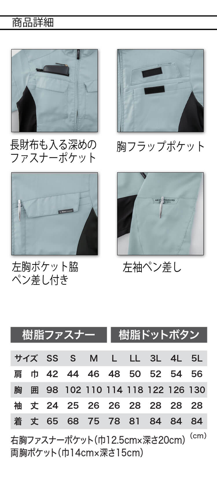 地球に優しいエコ素材、JIS制電、ストレッチワークウェア。バイオベース原料のポリエステルを使用し、二酸化炭素の削減、化石燃料の使用削減に貢献します。