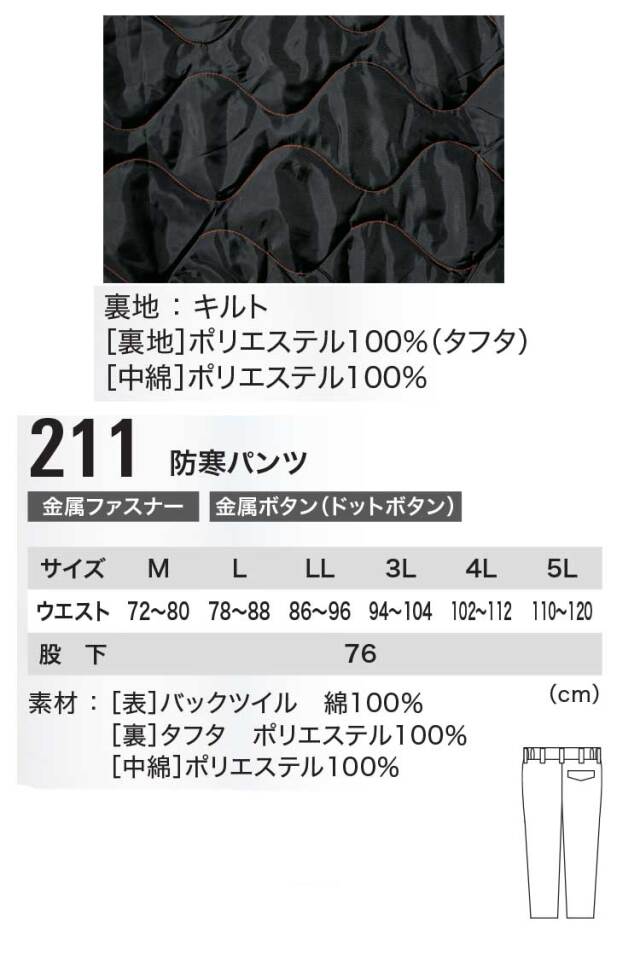 防寒着 防寒服 作業服 XEBEC ジーベック 現場服 秋冬 防寒パンツ 211