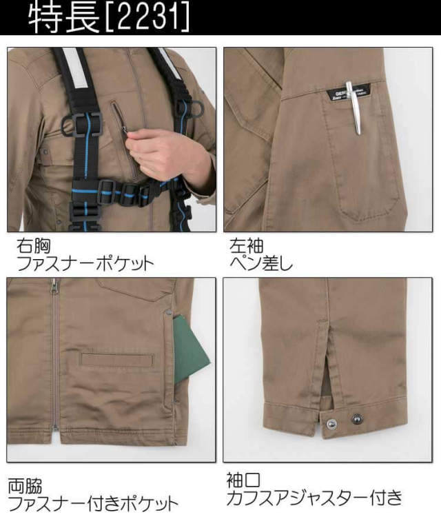 スタイリッシュで動きやすい。フルハーネスに対応した現場服半袖ブルゾン。光沢のあるスラブストレッチが新しい。バイオウォッシュのソフトな肌ざわりと、ストレッチ立体パターンとの相乗でストレスフリーな着心地。フルハーネスをしたままで使えるポケットやモノの落下を防止するファスナーポケットを装備した春夏半袖ジャンバーです。カジュアルデザインとスタイリッシュなシルエットで普段着としても着ていただけるシリーズです。