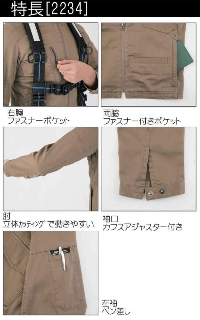 スタイリッシュで動きやすい。フルハーネスに対応した現場服長袖ブルゾン。光沢のあるスラブストレッチが新しい。バイオウォッシュのソフトな肌ざわりと、ストレッチ立体パターンとの相乗でストレスフリーな着心地。フルハーネスをしたままで使えるポケットやモノの落下を防止するファスナーポケットを装備した春夏長袖ジャンバーです。カジュアルデザインとスタイリッシュなシルエットで普段着としても着ていただけるシリーズです。