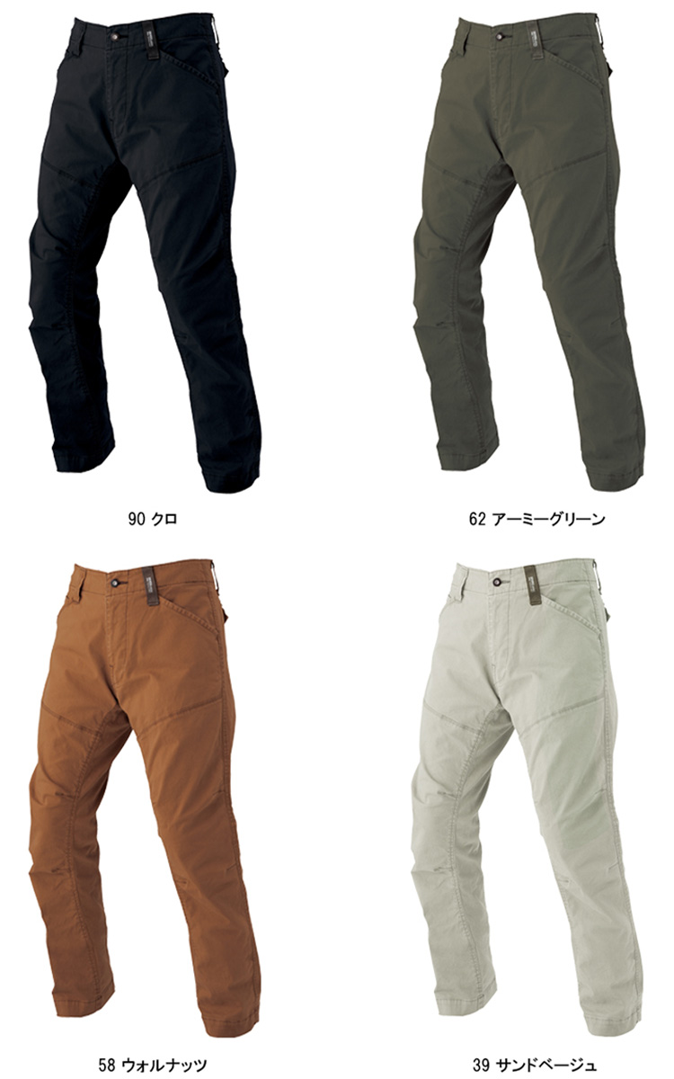 動きやすさを追求したストレッチ現場服。ひじ、ひざの立体カッティングとストレッチ素材で動きやすさを追求。ウォッシュド加工を施したカジュアルテイストのワークウエア。