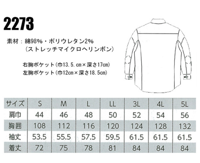 現場服 作業服 XEBEC ジーベック 春夏 長袖シャツ 2273