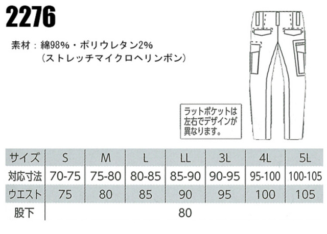 現場服 作業服 XEBEC ジーベック 春夏 カーゴパンツ 2276