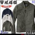 ジーベック現場服2834シリーズ長袖ブルゾンです。超伸びストレッチ素材で動きやすいのが特徴な作業服です。洗い加工を施した生地はユーズド感がありながらも、ドビー織の凹凸感でハードな印象を与えます。ポリウレタン糸の入ったのびのびストレッチとやわらかい風合いで着用時の窮屈感を軽減します。