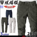ジーベック現場服2834シリーズカーゴパンツです。超伸びストレッチ素材で動きやすいのが特徴な作業服です。洗い加工を施した生地はユーズド感がありながらも、ドビー織の凹凸感でハードな印象を与えます。ポリウレタン糸の入ったのびのびストレッチとやわらかい風合いで着用時の窮屈感を軽減します。