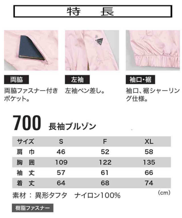 作業服 サービス 長袖ブルゾン XEBEC ジーベック 700 秋冬