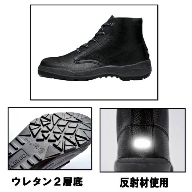 中編上のワークブーツで足首・くるぶしをガード。ロングブーツと短靴の特長を併せ持つ中編上タイプのワークブーツ。軽量でクッション性に優れたウレタン2層底の「ツヤなし」タイプで、一般的な作業現場向けです。