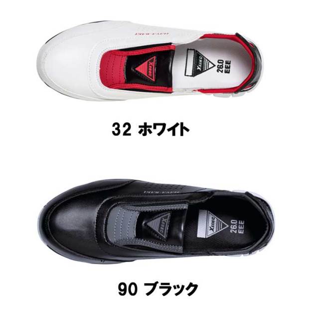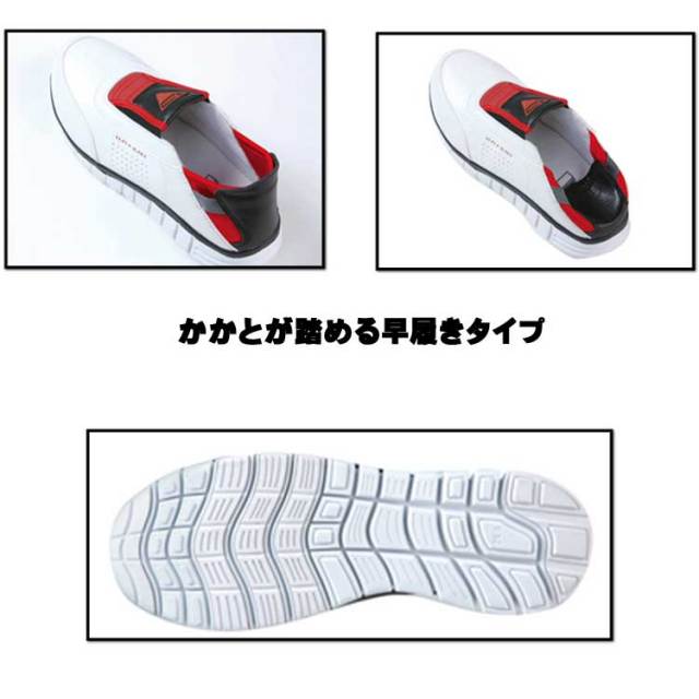 かかとも踏める早履きタイプスリッポン型セフティシューズ。かかと踏み可能なスリッポン型セフティシューズ。軽量で屈曲性に優れたソールデザインを施した靴底は、ホワイト仕様で汚れもケア。内装工事や引っ越しなど、脱ぎ履きの多い仕事に最適の早履きタイプです。
