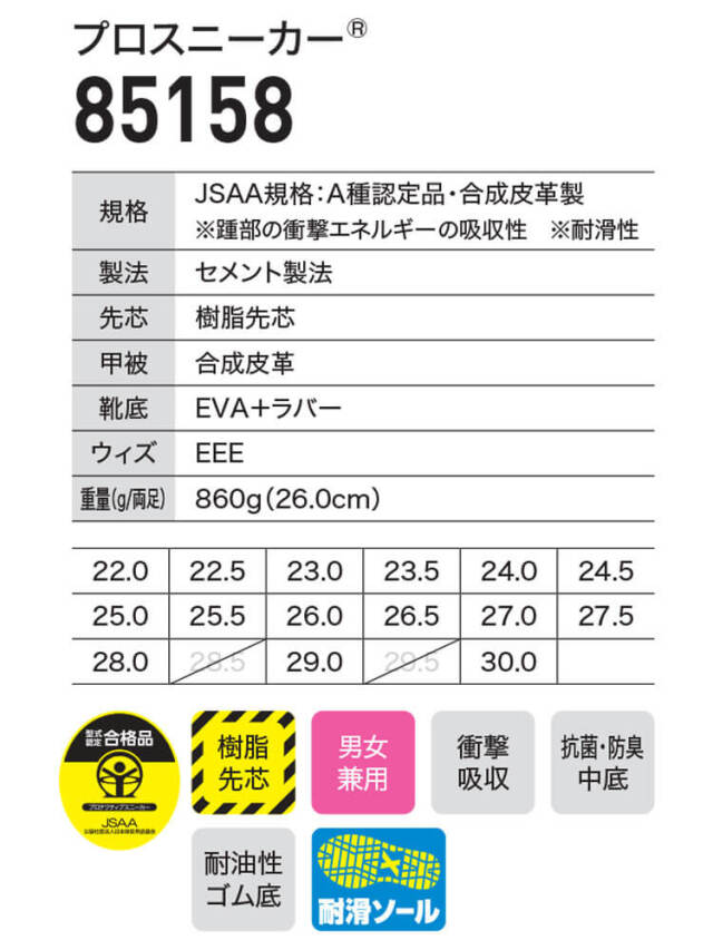 | 製品名: | 安全靴 XEBEC ジーベック プロスニーカー 85158 作業靴 樹脂先芯 耐滑 |