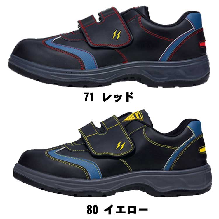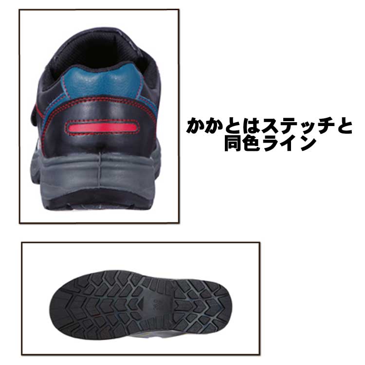 静電気帯電防止機能付き、高機能ローカットモデル。ローカットながらハードな現場にも対応できるセフティシューズに、静電気帯電防止機能を加えて、静電気を嫌う職場にも活躍の場を広げています。黒地に映えるカラーステッチがデザイン性を高めています。