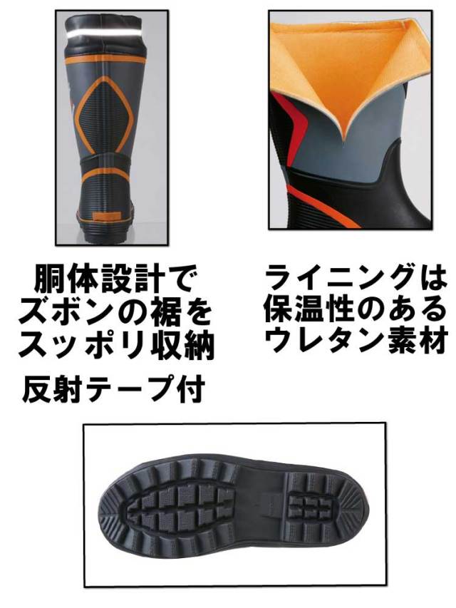 ウレタン裏地の保温性で幅広く対応。ズボンの裾を入れて作業できる胴体設計の安全長靴。先芯入りでハードな現場から農作業まで幅広い現場に対応します。ライニングは水場の作業でも冷えにくいウレタン素材。