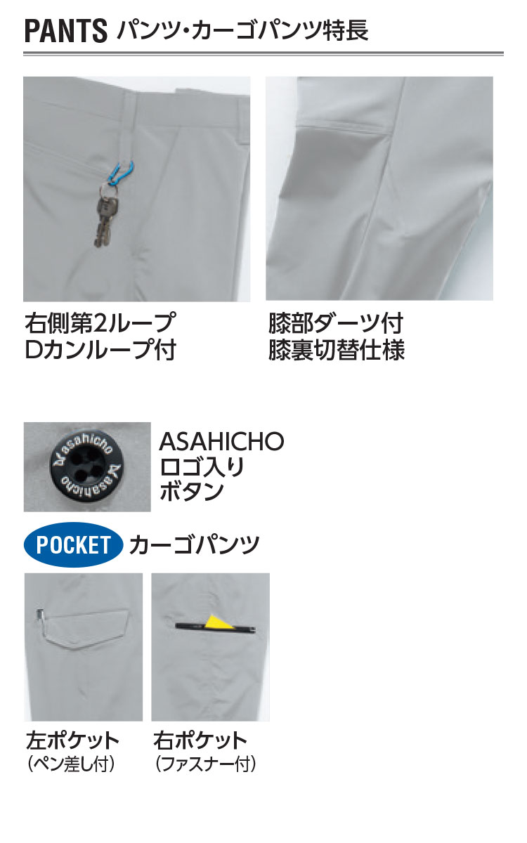作業服 春夏 アサヒチョウ ASAHICHO 842 ノータックカーゴパンツ
