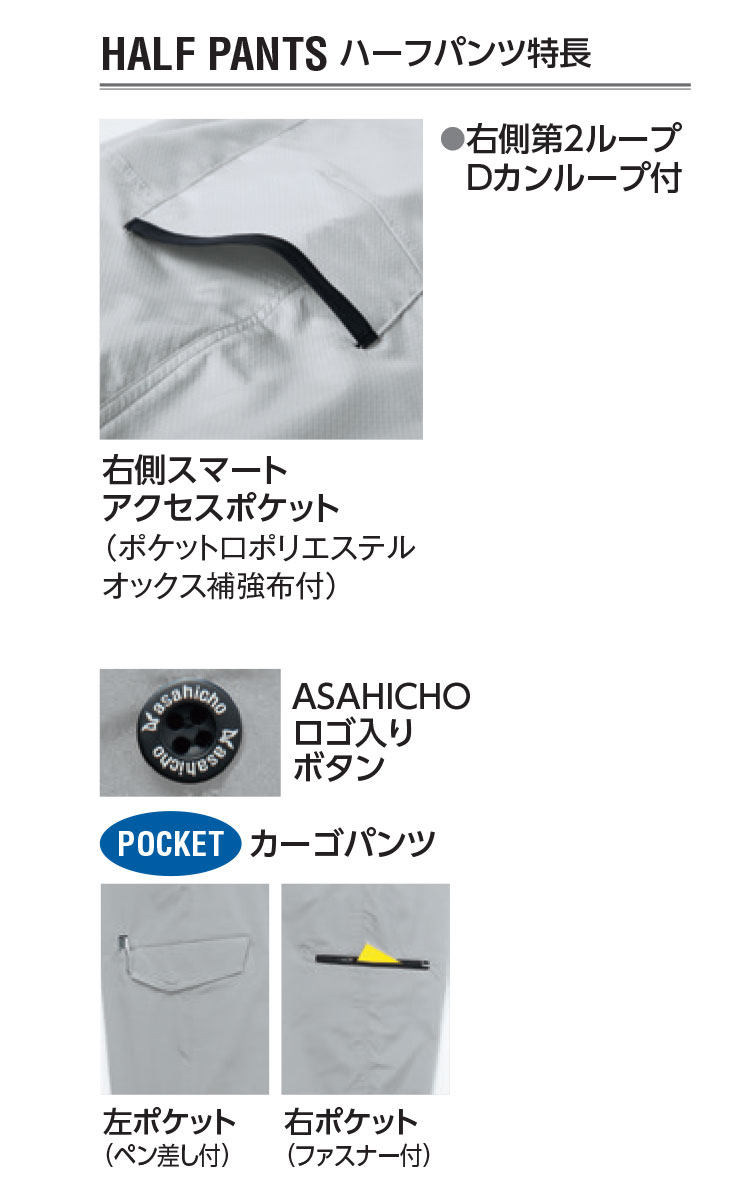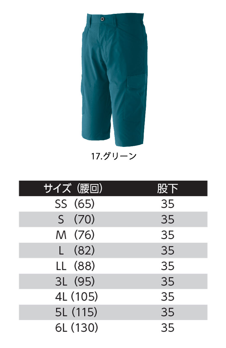 製品名: 作業服 春夏 旭蝶繊維 ASAHICHO 845 ノータックハーフパンツ