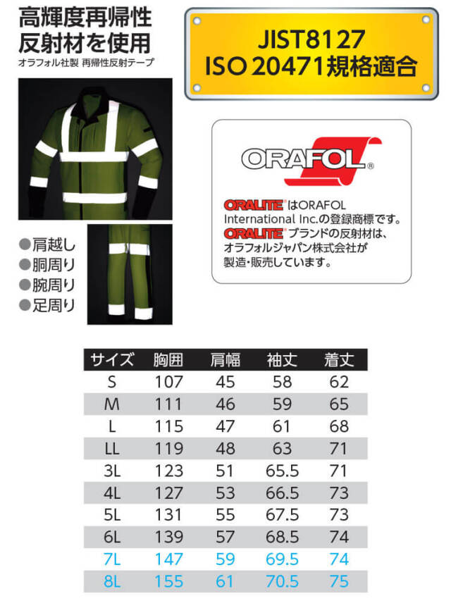 Asahicho アサヒチョウ 高視認ツナギ E783 安全服 帯電防止