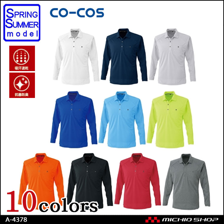 作業服 コーコス co-cos 長袖ポロシャツ A-4378 春夏