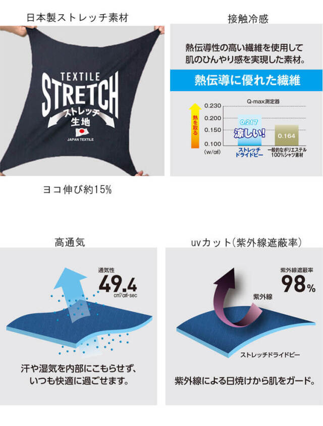 ・日本製ストレッチ素材(伸長率約15%)