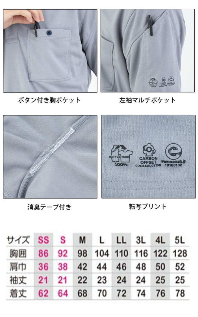作業服 コーコス CO-COS エコ半袖ポロシャツ AE-1697 UVカット 春夏