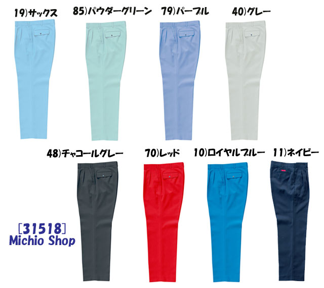 19)サックス 40)グレー 85)パウダーグリーン 79)パープル