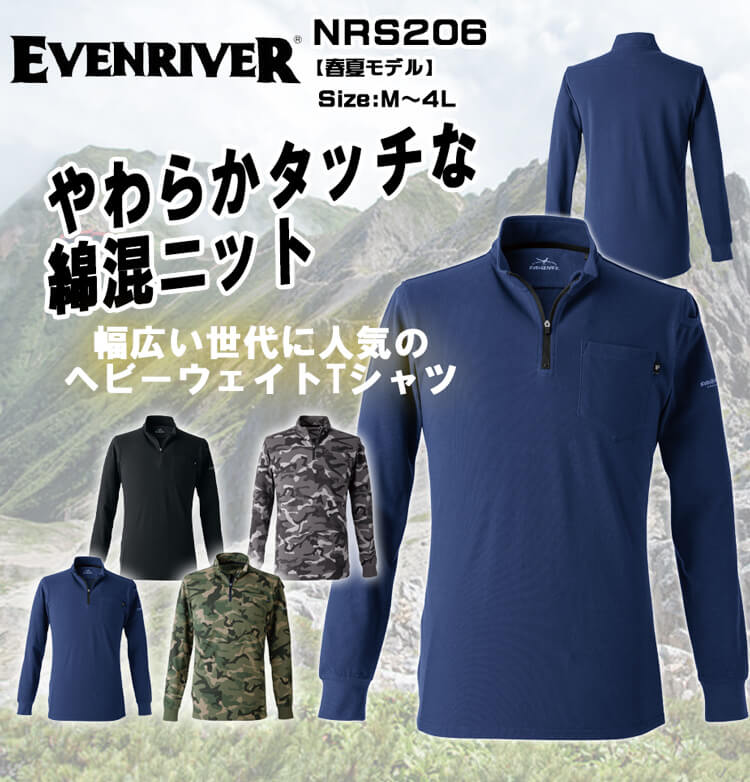 | 製品名: | EVENRIVER イーブンリバー ヘビーウェイトジップネックTシャツ 長袖 NRS206 |