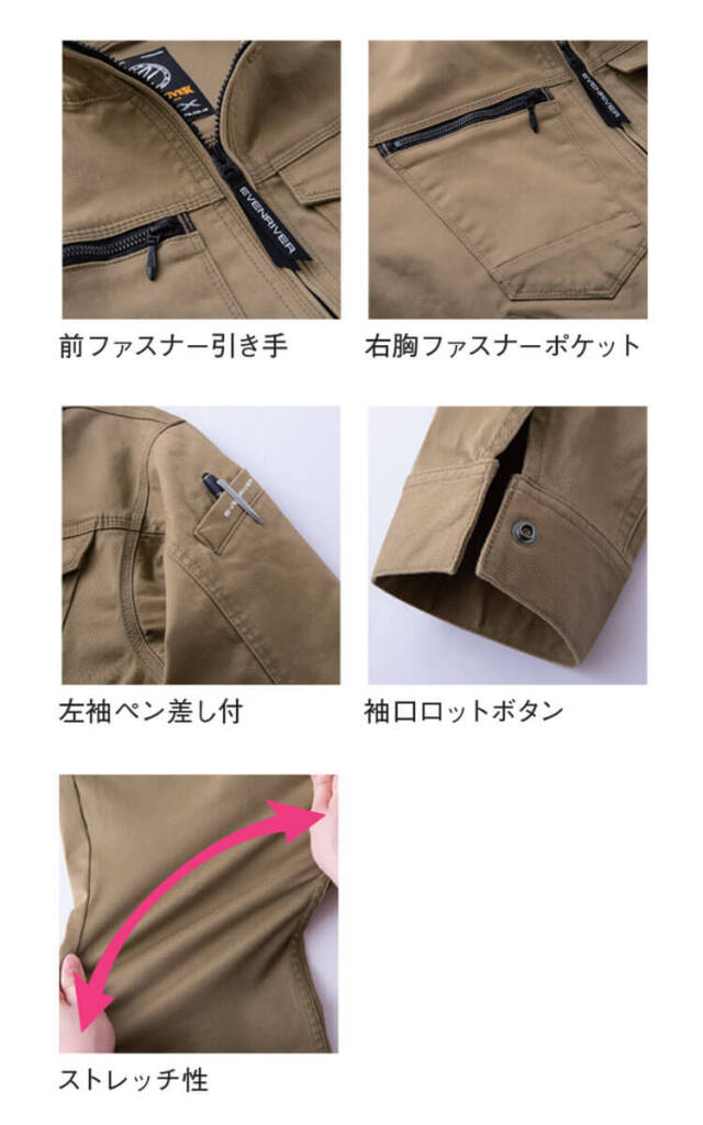 ハードな現場から室内でも打ち合わせまで、あらゆるシーンで着用できます。襟を立てワイルドに、フォーマルに寝かせてもどちらもキマります。 袖の切り替えステッチや大きめの携帯も収納可能な多機能ポケットでスタイリッシュかつ機能性にも優れています。ワークウェアの定番人気素材「綿」にフォーカスし、コストパフォーマンスにもすぐれた次世代主力シリーズです。綿特有の柔らかな肌触りに加え、しなやかなストレッチ感と高い耐久性があります。