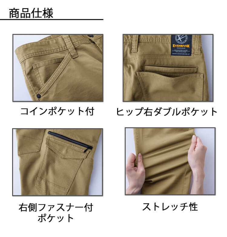 | 製品名: | EVENRIVER イーブンリバー ストレッチライトファスナーカーゴパンツ US1703 |