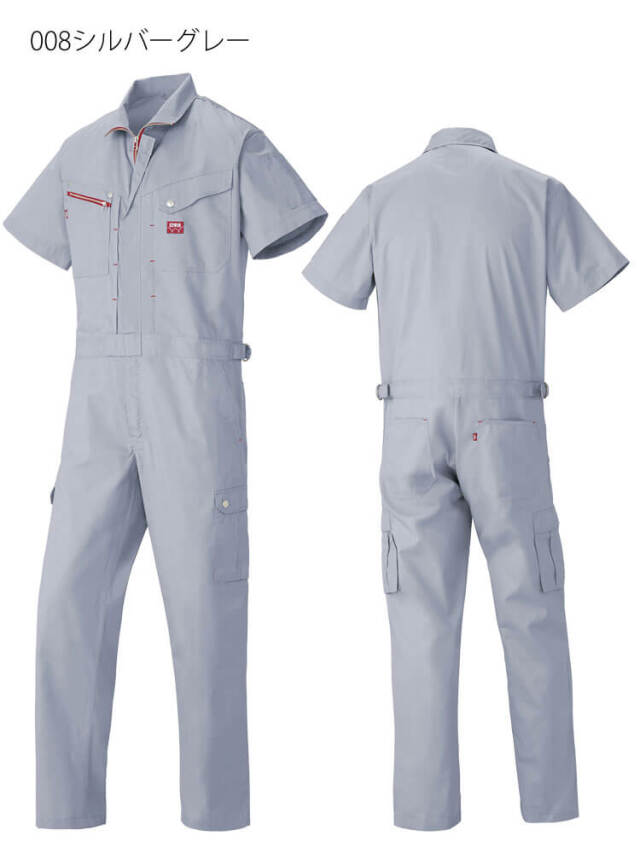 さりげないレッドのカラーがユニフォームを引き締める半袖つなぎ服。