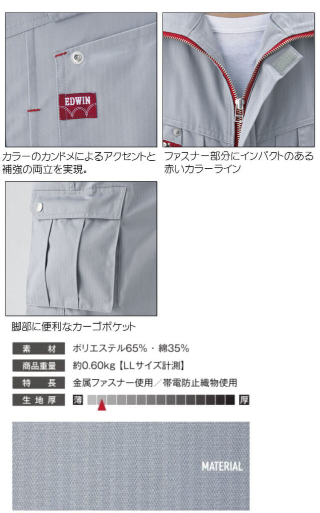EDWIN エドウィン ブルゾン 82002 作業着 作業服 長袖 ジャケット 通年 帯電防止織物 山田辰