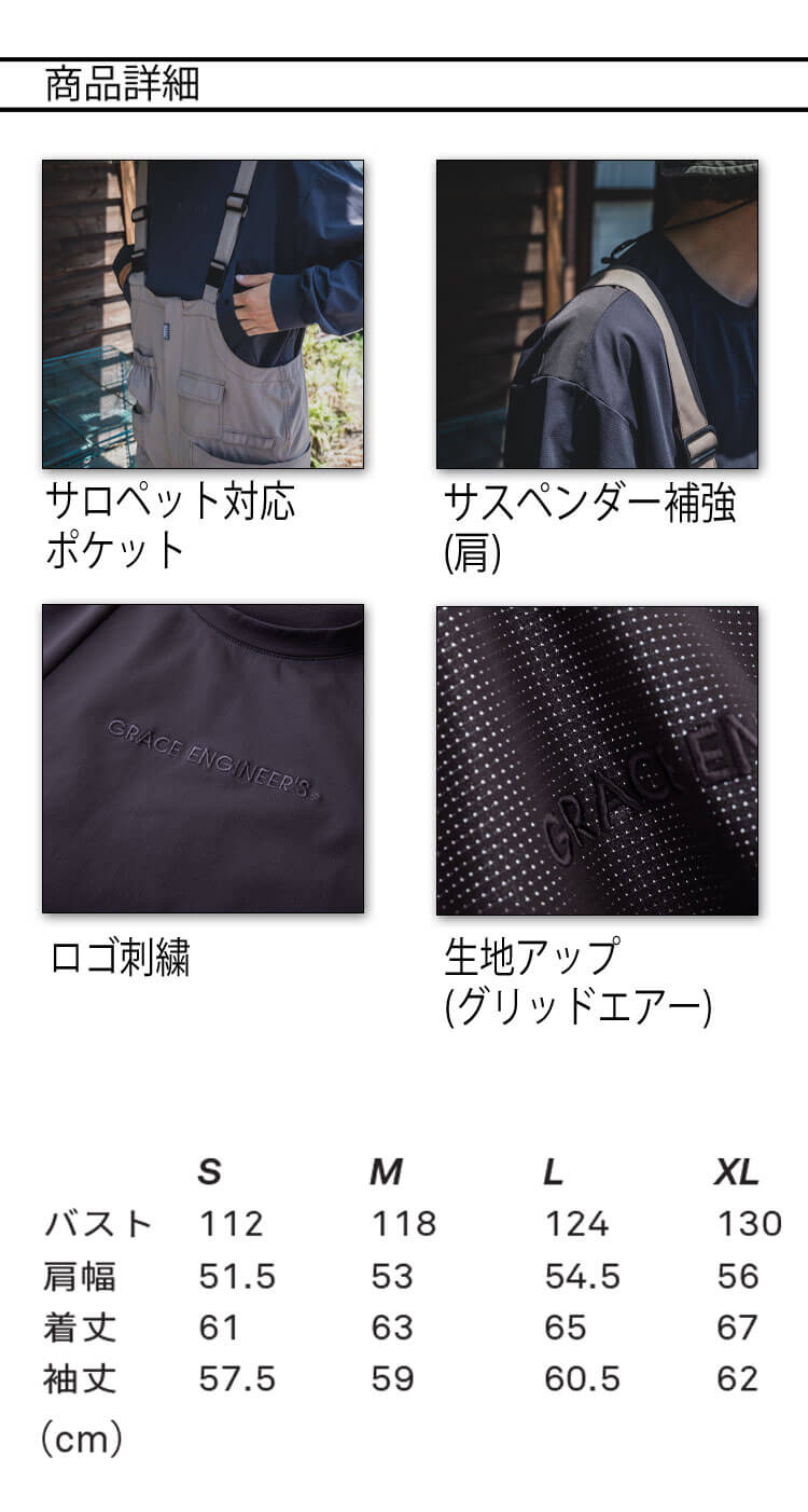 | 製品名: | グレースエンジニアーズ GRACE ENGINEER'S サロペ・デ・クルーネック GE-3008 通年シャツ 作業着 SKプロダクト |