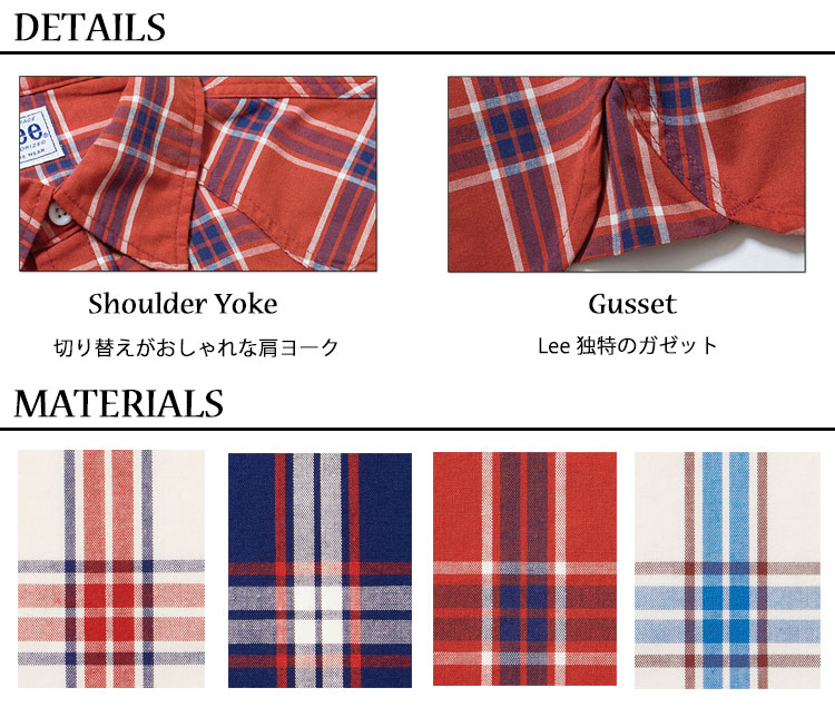 さらっとした肌触りで着心地の良さが特徴。コンパクトなシルエットに、Leeらしいオリジナルチェック柄のシャツ。1枚でも羽織としても着用が可能で、コーディネートのアクセントになるアイテム。さらっとした肌触りで通年着用が可能です。