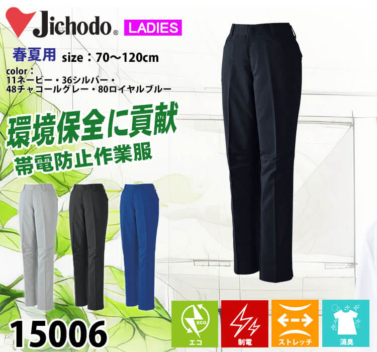 | 製品名: | jichodo 自重堂 エコ製品制電ストレッチレディースパンツ(裏付) 15006 作業着 春夏 |