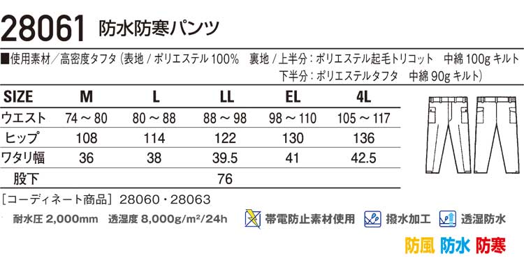 防寒着 防寒服 作業服 自重堂 防水防寒パンツ 28061