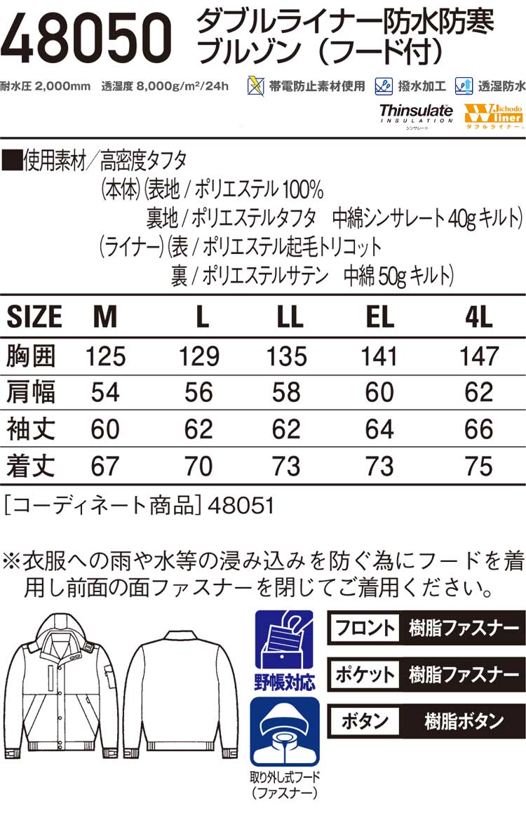 | 製品名: | ダブルライナー防水防寒ブルゾン(フード付) |