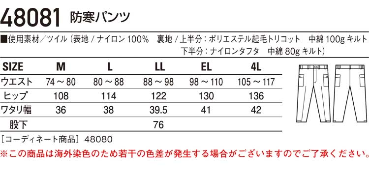 防寒着 防寒服 作業服 自重堂 防寒パンツ 48081