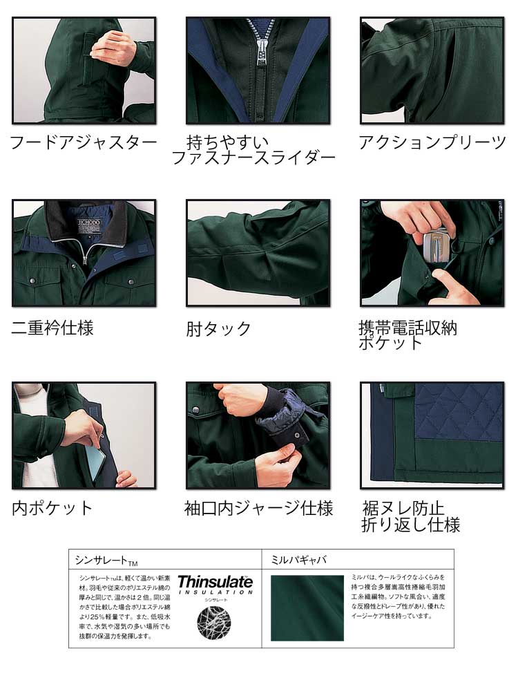 高機能中綿シンサレートで抜群の温かさを実現。ソフトな風合いとドレープ性を併せもつ着心地重視の防寒ウエア。厳冬からワーカーを守る高機能防寒ウエア。