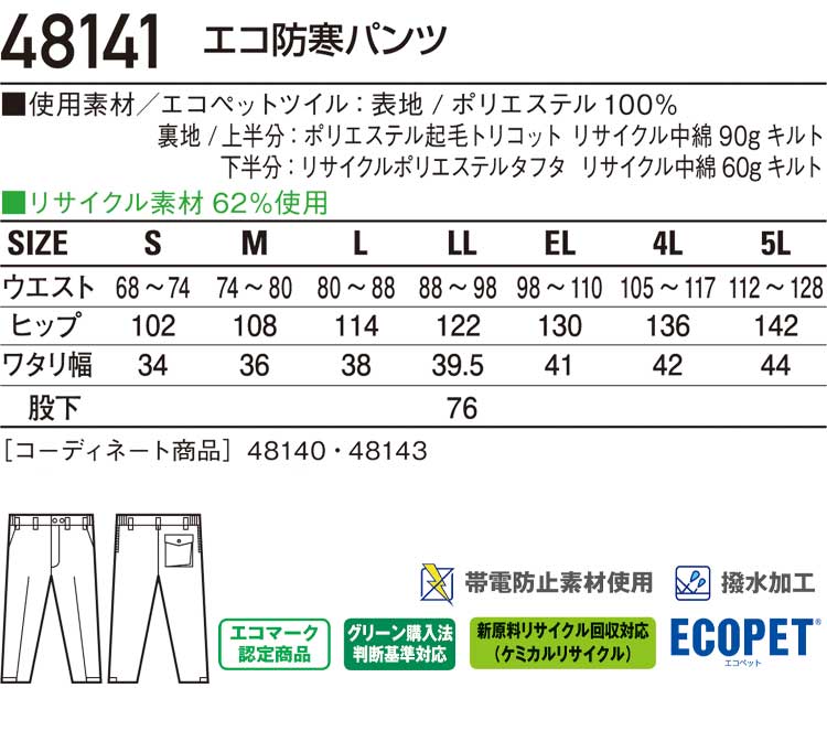 防寒着 防寒服 作業服 自重堂 エコ防寒パンツ 48141