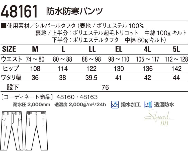 防寒着 防寒服 作業服 自重堂 防水防寒パンツ 48161