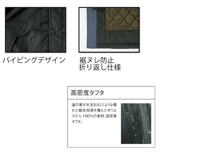 表地:ポリエステル100% 裏地:ポリエステルメッシュトリコット ポリエステルタフタ 中綿120gキルト