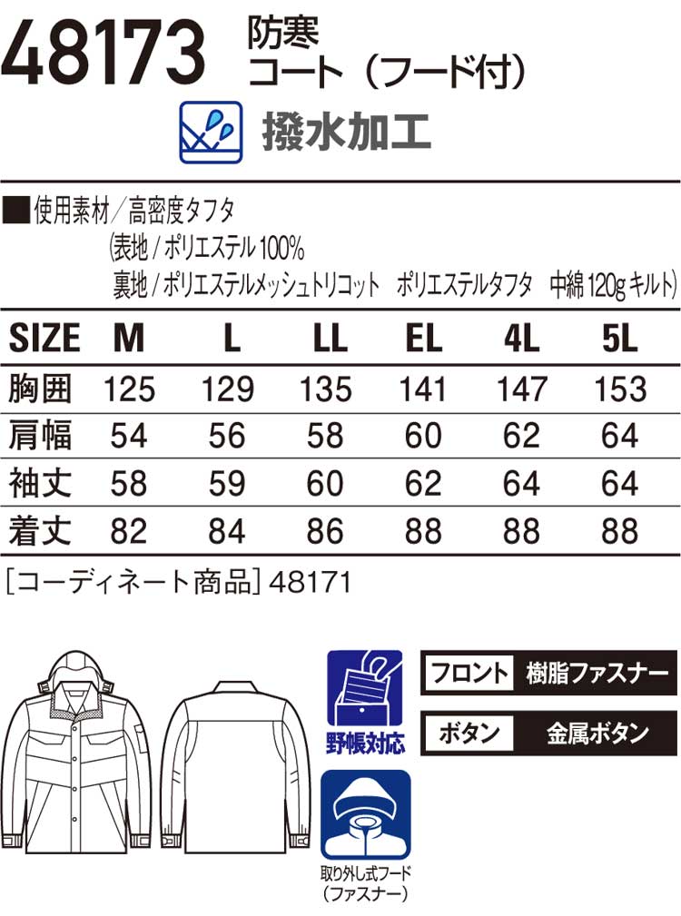 防寒着 防寒服 作業服 自重堂 防寒コート 48173