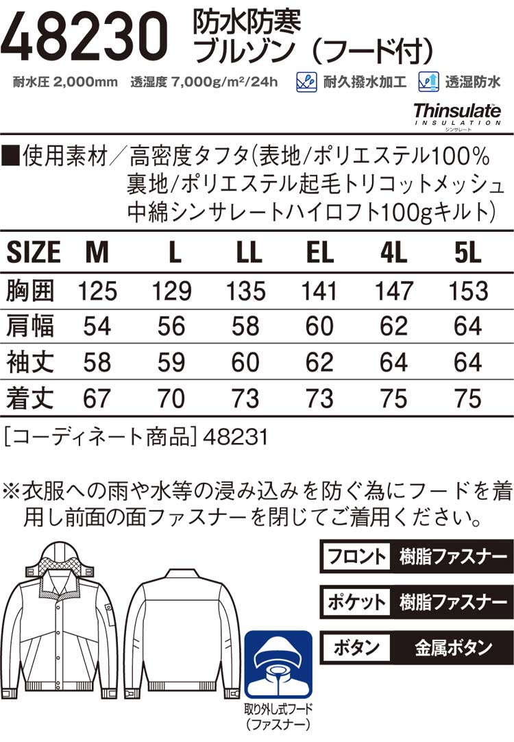 | 製品名: | 防水防寒ブルゾン(フード付き) |