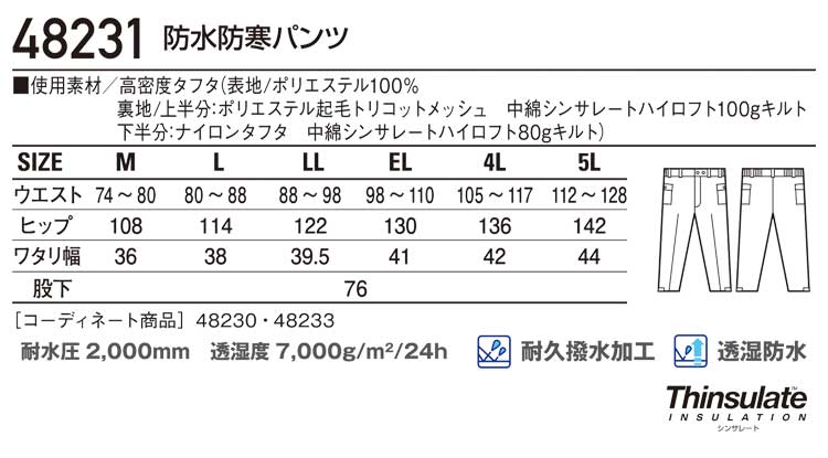 防寒着 防寒服 作業服 自重堂 防水防寒パンツ 48231