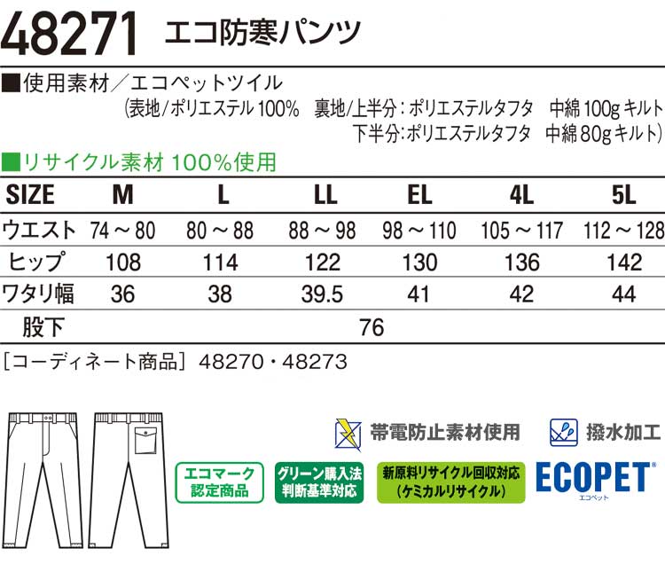 防寒着 防寒服 作業服 自重堂 エコ防寒パンツ 48271